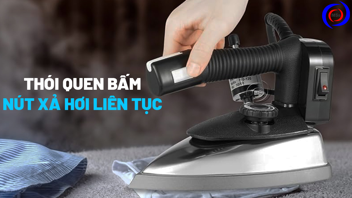 - Thói quen bấm xả hơi liên tục: Việc giữ nút xả hơi liên tục trong thời gian dài sẽ khiến lượng hơi thoát ra đẩy xuống mặt đế quá nhiều và quá nhanh. Khi hơi không thoát kịp thì nước sẽ đọng lại và chảy xuống bề mặt vải.