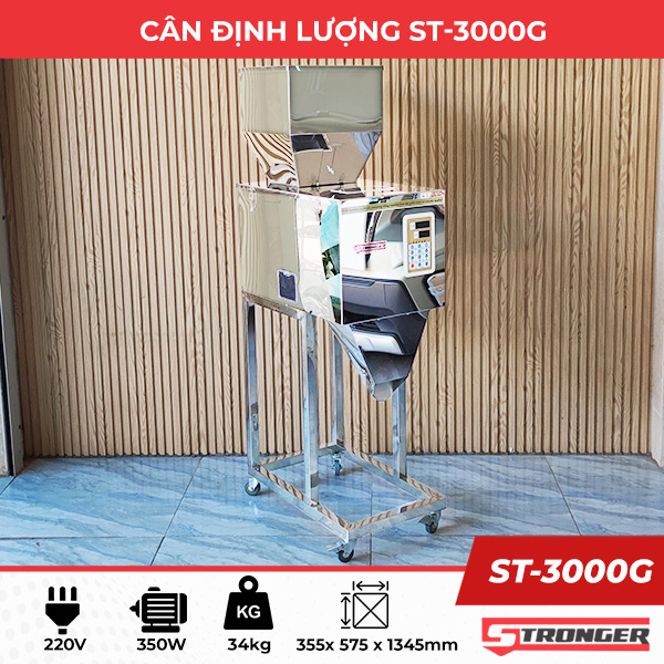 - Cân định lượng 3kg Stronger ST-3000G vận hành hoàn toàn tự động. Người sử dụng chỉ cần nạp nguyên liệu vào phễu chứa, sau đó cài đặt các thông số ở bảng điều khiển và máy sẽ tự động thực hiện cân - xả ngay.