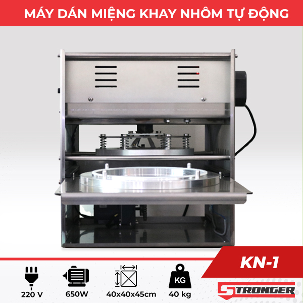 Máy dán miệng khay nhôm tự động KN-1 là thiết bị đóng gói chuyên dụng, hoạt động tạo ra một lớp niêm phong kín tuyệt đối trên miệng khay đựng thực phẩm, ngăn chặn tối đa xâm nhập của vi khuẩn, độ ẩm và không khí trong quá trình giao hàng.