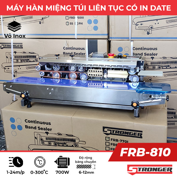 Máy hàn túi liên tục Stronger FRB-810I là máy đóng gói dạng nằm ngang, có chức năng chính là hàn kín miệng túi và in trực tiếp những thông tin như ngày sản xuất/hạn sử dụng lên bao bì.