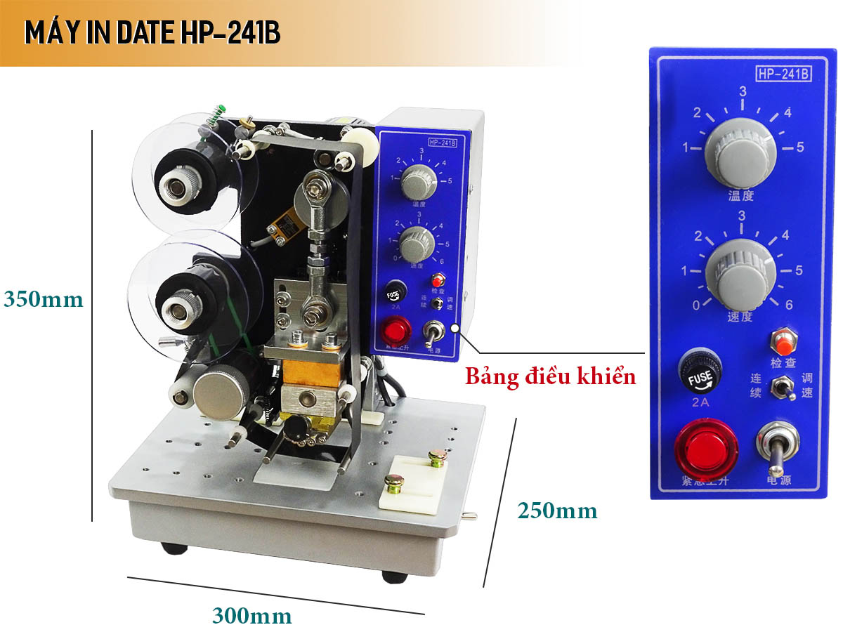 Máy phun date HP-241B có khuôn chữ được làm bằng hợp kim cao cấp, đặc biệt, không bị chảy, không bị ăn mòn và cuộn in bằng nhiệt chuyên dùng.