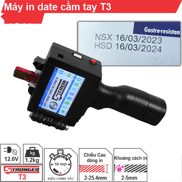Máy in date cầm taycòn được gọi là máy bắn date cầm tay, thường được phân loại dựa theo chiều cao in như máy in date cầm tay 12.7mm, 25.4mm, 50mm. Trong bài viết sau đây, M5s sẽ giới thiệu về sản phẩm máy in phun date cầm tay T3 được nhiều người ưa chuộng nhất hiện nay với các ưu điểm nổi trội nhỏ gọn để giúp bạn có thêm thông tin chọn lựa.